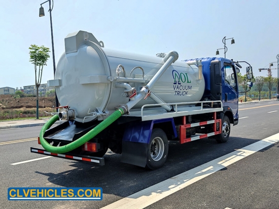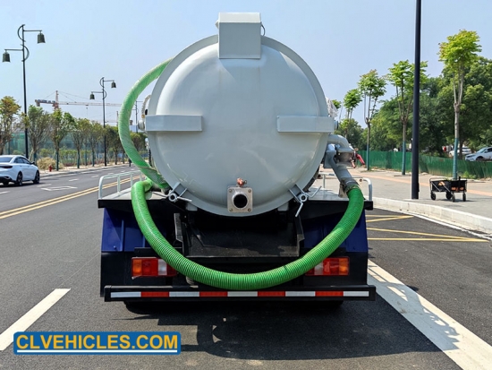 2. O caminhão de sucção é equipado com uma janela de inspeção de nível e uma porta de fluxo automático, um dispositivo de lavagem das mãos, uma válvula antitransbordamento, um tubo de sucção de 8 metros, uma abertura hidráulica da porta traseira e uma bomba de vácuo de circulação de água SK-15. O caminhão de sucção possui um grande curso de sucção e sucção. Além disso, o tanque possui uma função de elevação.
